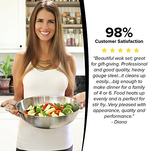 WHAT'S IN THE BOX - This set comes with one 13-inch diameter 4 pound stainless steel wok, one stainless steel dome cover lid, and one bamboo handle spatula to make sure that you can cook with your new stainless wok set on Day 1.★