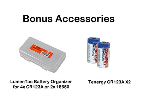 • The bundle includes 2x Tenergy CR123A and a LumenTac Battery Organizer