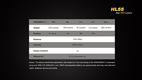 FENIX HL55 900 LUMEN HEADLAMP WITH 2X TENERGY CR123A BATTERIES AND LUMENTAC BATTERY ORGANIZER