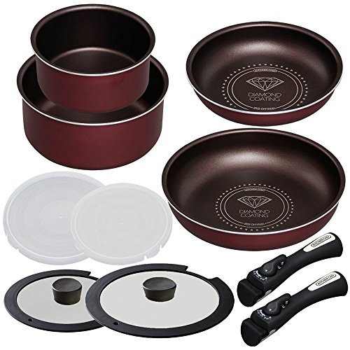 -. Title : アイリスオーヤマ 鍋 フライパン セット 「ダイヤモンドコートパン」 取っ手の取れる IH非対応 レッド