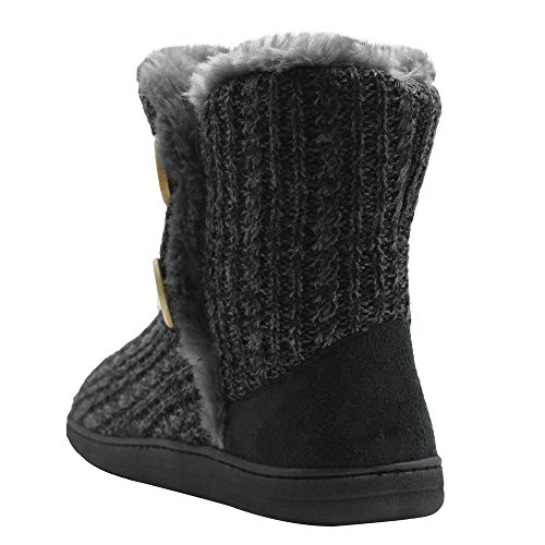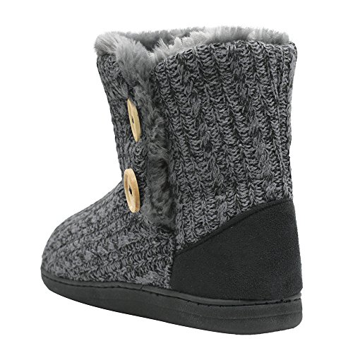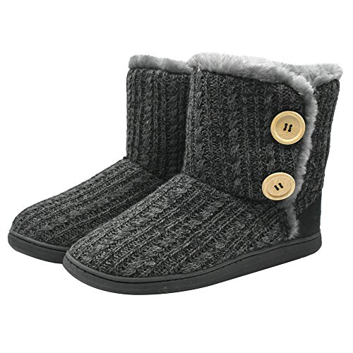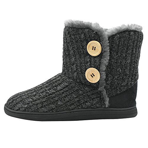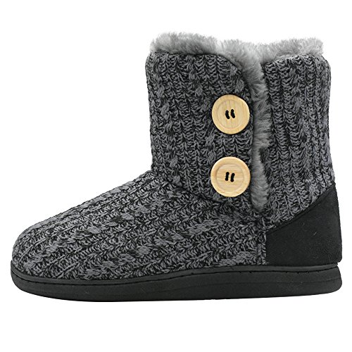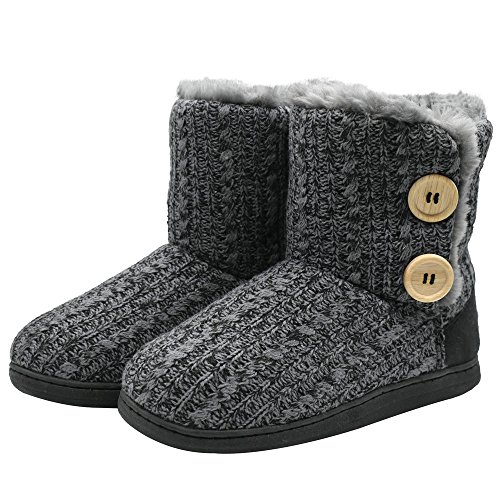Sizing Features True to size. The woolen yarn upper is flexible, you can wear thick socks. New shoes may be a little tight, but it will stretch out after wearing a few times. If between sizes,or you want to wear very thick socks, order next size down. Upper: Woolen yarn elements is always in favour, trendy and classic. Carefully chosen soft woolen yarn fabric and fine stitching workmanship,adding 2 decorative buttons, makes the slippers charming and comfortable. Insole: Insole is filled with a layer of cotton farbric and a layer of memory foam, comfortable every step, and can reduce foot stress. Outsole: Out sole is made of rubber, which is light in weight and good at tear strength, also low temperature flexible. Excellent anti-slip performance keep you safe everywhere indoor.