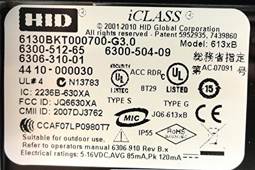 -. Feature : Manufacturer: HID / Part Number: 6130BKT0007000-G3.0 / Frequency: 13.56 MHZ - Interface: WIEGAND INTERFACE / Approx Dims. HWD-Inches: 4" X 2" X 1" - Color: BLACK / iClass is based on international ISO interoperability standards providing compatibility with many popular card technologies