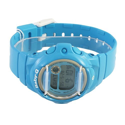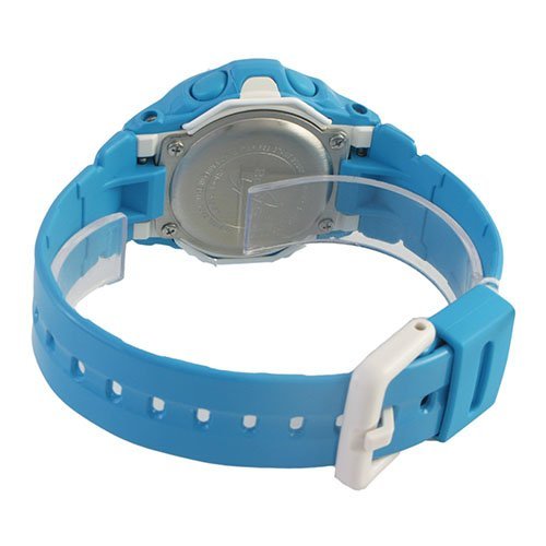 Sport watch, Digital quartz movement, Hourly time signal, Auto-calendar, Databank, Day counter (automatically counts down the days from the current date to a target date), Five daily alarms, Memory capacity (up to 25 sets of data), Countdown timer, Aqua EL backlight with afterglow, 12/24-hour formats, World Time with 29 time zones and 30 cities, City code display, Daylight saving on/off, Button operation tone on/off, Stopwatch, Shock resistant, Digital day, date, month and year display, Polished silver-tone aluminum bezel, Glossy aqua resin case, Aqua resin selector buttons, Brushed stainless steel silver-tone caseback, 200 meters/660 feet water resistant