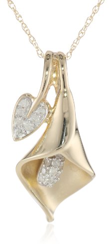 -. Title : 10K Gold and Diamond Calla Lily Pendant Necklace (1/10 cttw, I-J Color, I2-I3 Clarity)