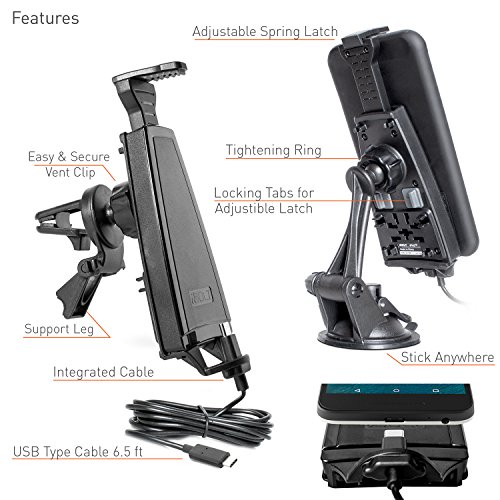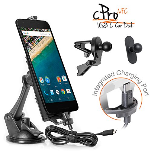 -. Feature : DRIVE SAFE and LEGAL: Super convenient to drive with your Nexus 6p or Nexus 5x Smartphone in a secure and easy view position with the USB Type C to Type C car-dock. Multiple placement options as VentKlip, Suction Mount AND miniBall mounts included. / INTEGRATED CHARGING CONNECTOR: The cPro is the first real car-dock for Type C USB. Simply slide your handset on to the Dock when stepping into your car; no more "fishing up" a charging cable from the floor. Keep your car interior neat without any loose cables. / FAST CHARGING: Stay charged even when using power hungry apps like Waze, Google Maps etc. Always arrive fully charged. Our Type C to Type C charging cable can exceed 2.700 mA charging rate even in the car. Type C 3 Amp charger not included, sold separately. / CASE COMPATIBLE: With the unique and patented design of the integrated Connector virtually every model of Cases can be used with the cPro car dock. Compatible with Nexus 5X, Nexus 6P, LG G5, Robin, and Microsoft Lumia 950 / COMPLETELY FLEXIBLE: The sP.R.Ing loaded latch can be set to different heights, fitting handsets from the size of Nexus 5x (with no Case) up to Nexus 6p (with a thick Case). Built-in NFC tag will launch the free premium Android App "Dock'n Drive" that turns your Phone into a virtual driving assistant. With the 17 mm ball joint alternative mounting solutions made for Garmin, ProClip and others can be used. Optional AMPS plate mount available.