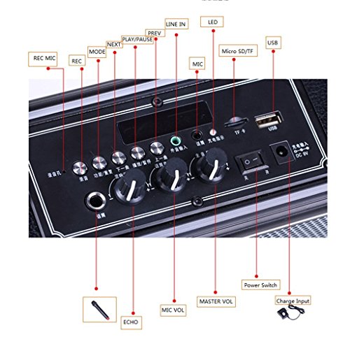 Rechargeable Portable PA System Outdoor Square Dance Stereo (Black) With Wireless MIC & FM Radio