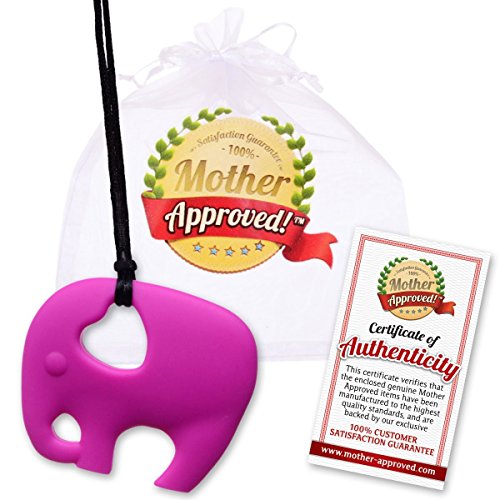 Mother Approved Teething Necklace Baby Pink Elephant, Includes Dry Bag and Certificate