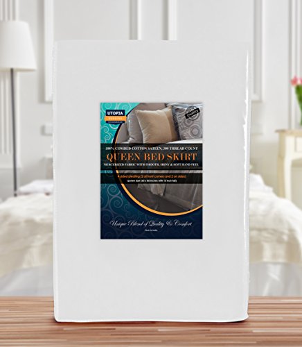 Premium Cotton Bed-Skirt (Queen, White) - 100% Finest Quality Long Staple Fiber - Durable, Comfortable and Abrasion Resistant, Quadruple Pleated, Cotton Blended Platform - By Utopia Bedding