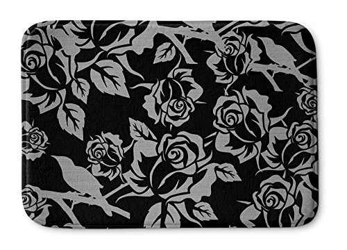 KAVKA Designs Silver Metallic Garden On Black Memory-Foam Bath Mat, (Grey/Black) - , Size: 17x24x0.75 - (PLUAVC2603SUMS)