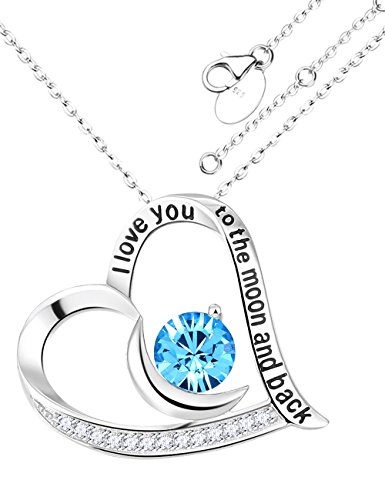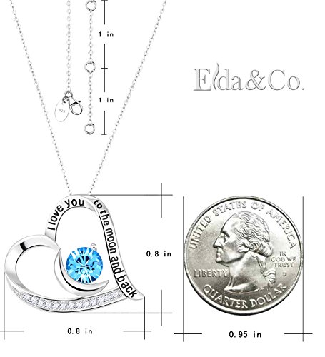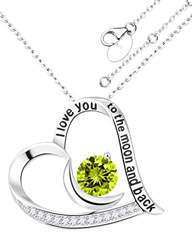 -. Feature : ♥QUALITY COMES FIRST ♥ Heart and moon Necklace engraved with "I love You to The Moon and Back" design,18K White Gold over Sterling Silver pendant with 18" rolo Chain and adjustable 1"-2" necklace extender / ♥A BEAUTIFUL CHARM ♥ Peridot Swarovski necklace great shinning Birthstone sit in the elegant designed engraved sterling silver heart pendant, the perfect choice for any occasion. Fashionable and with a luxurious touch, you can wear it daily or in special events and impress everyone with your unique style / ♥GREATGift IDEA♥ Packed in an elegant white jewelry box, perfect gift on any occasions like Anniversary,Birthday,Mother's Day,Valentine's Day,Christmas Eve, perfect gift for women, for girlfriend, for wife, for girls, for mother, for daughter / ♥STAND OUT IN STYLE♥ The exquisite silver color and the unique design of this heart necklace make it an elegant addition to the jewelry collection of any woman, who wants to stand out with her own, unique, luxurious style / ♥STELLAR CUSTOMER SERVICE♥ Elda&Co offers you a LIFETIME WARRANTY in case you encounter any problem with your new jewelry, with nothing to worry about, order for you or your beloved one today! 100% satisfaction and money back guarantee. Just be happy to add this beautiful necklace to your jewelry collection