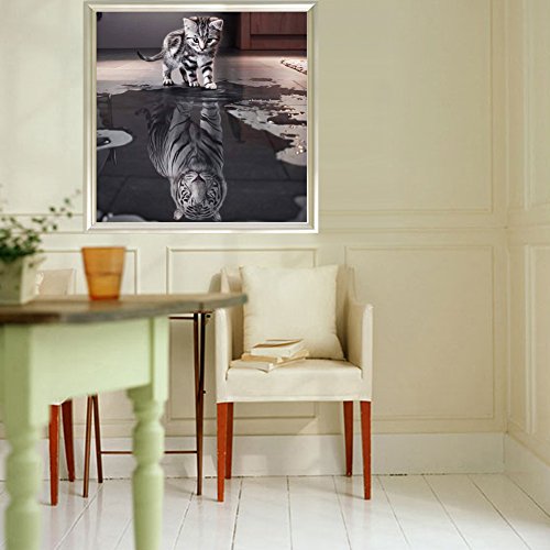 Muhuyi 5D DIY Diamond Painting By Number Kits,Full Diamond Painting Cat and Tiger Rhinestone Embroidery Cross Stitch Home Decor (12X12inch/30X30CM)