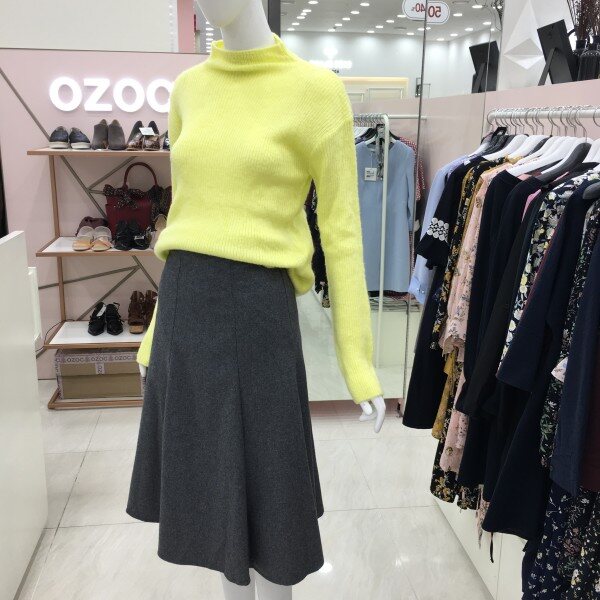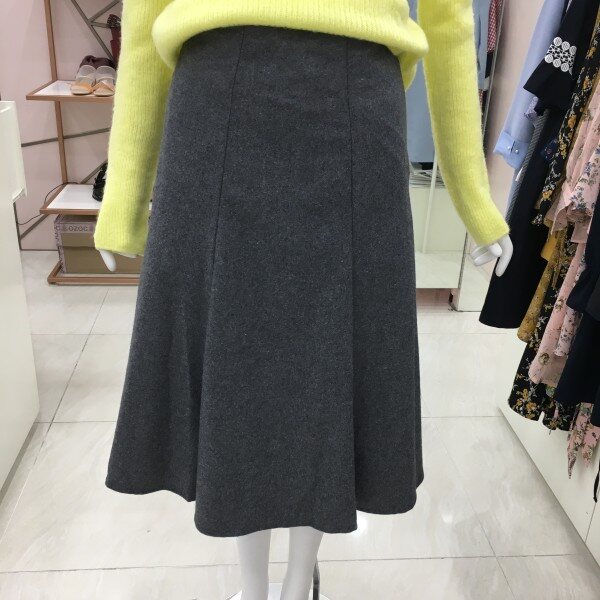 모직 플레어 스커트 소개해드려요.뒷밴딩으로 되어있어 착용하기 편하며 기본 플레어 라인으로 목폴라나 셔츠와 매치하시기 좋습니다