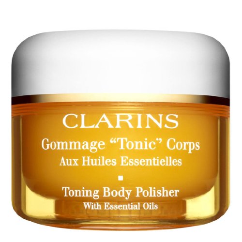 -. Feature : Clarins Toning Body Polisher--250g/8.8oz for Women / Leaves skin looking toned, radiant and sleek / Smooths away dry cells, flakes and impurities to reveal the glowing skin beneath / Provides gentle exfoliation without loosing skin balance / Buttery blend of salt and sugar crystals and natural oils for skin that looks and feels silky-soft