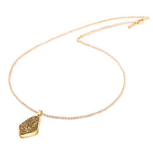 -. Title : Drusy Quartz Teardrop Pendant Necklace with Gold-Plated over Brass, 16"+3" Extender