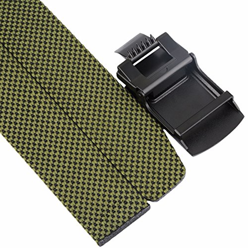 Easy Use--Just slides one ends through the buckle and adjust to your size, then press down the end of the buckle to lock the belt.Grasp the webbing at the end of buckle and pull up to loose the belt.