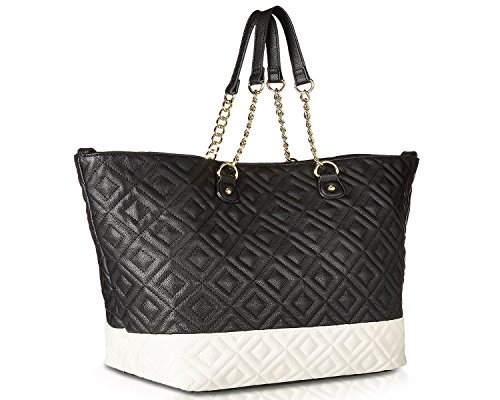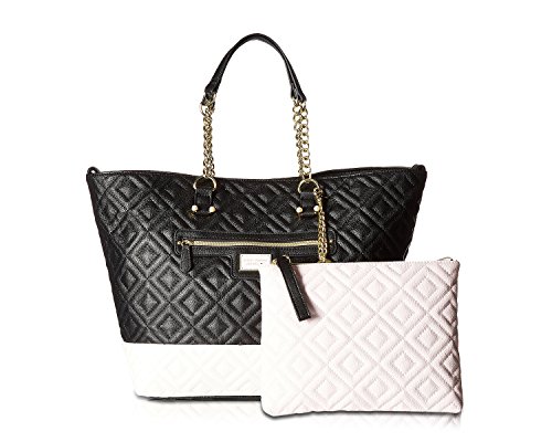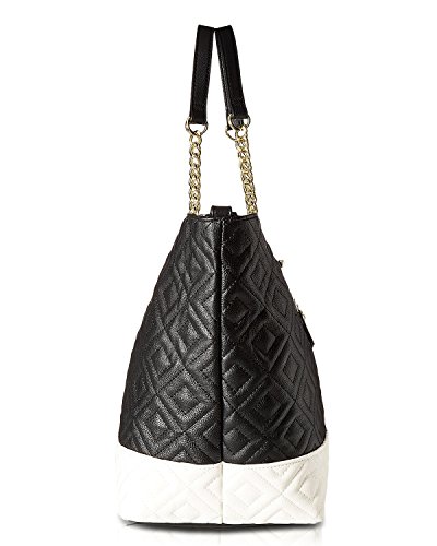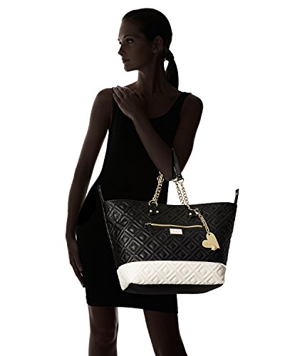 You'll never fall into a style rut with the Betsey® Johnson Trap Tote. Made of synthetic leather. Magnetic snap closure. Additional zipper bag included. Dual flat carry handles with chain detail. Exterior features a color block design, quilted, detail, zip pocket at front, and polished hardware. Flat base. Lined interior flaunts a back wall zip pocket and two slip pockets. Imported. Measurements: Bottom Width: 13 in Depth: 8 in Height: 12 1⁄2 in Strap Length: 23 in Strap Drop: 8 1⁄2 in Weight: 1 lb 10 oz This product may have a manufacturer's warranty. Please visit the manufacturer's website or contact us at warranty@support.zappos.com for full manufacturer warranty details.Feature
