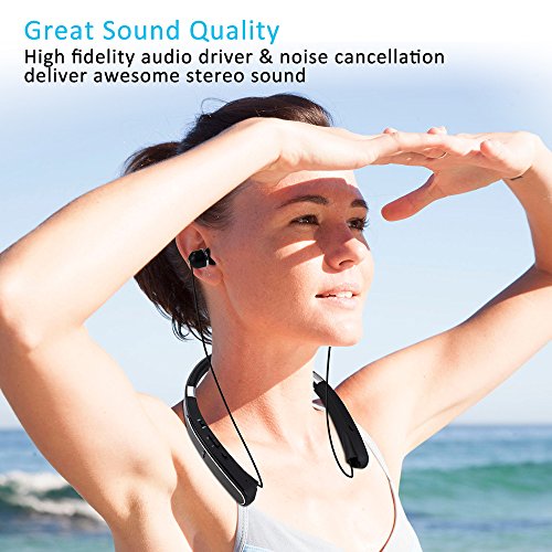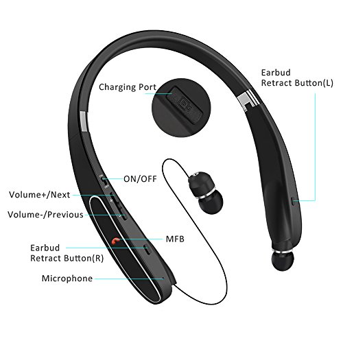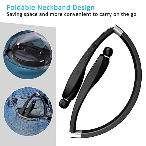 -. Title : Matone Bluetooth Headphones, Wireless Neckband Headset [20 Hours Playtime] Noise Cancelling Stereo Earphones with Mic Sweatproof Sport Headphones Foldable Design & Retractable Earbuds