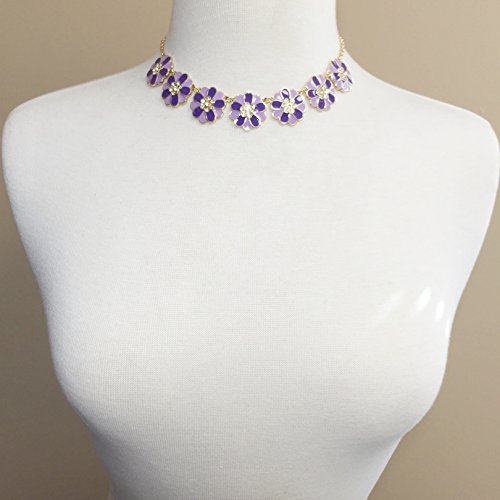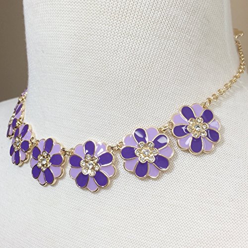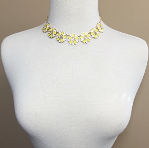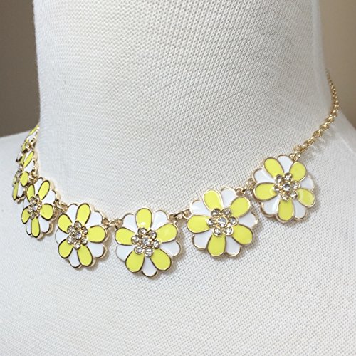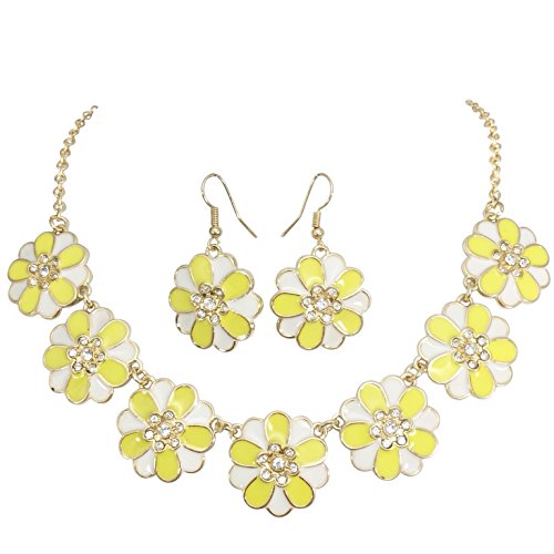 -. Title : 7 Daisy Flower with Rhinestones Cluster Gold Tone Boutique Statement Necklace & Earrings Set