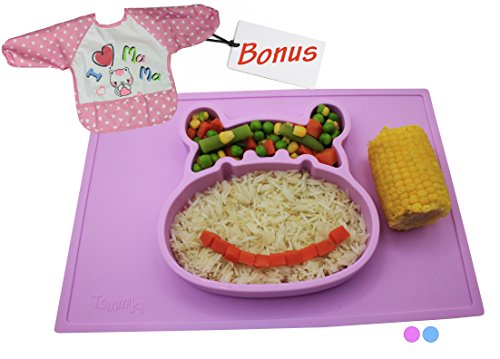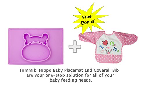 -. Title : Baby Silicone heat resistant Placemat Food Plate Impeccably designed to Perfectly Fit All Chair and Trays & Bib With Sleeves -12 month warranty by Tommiki