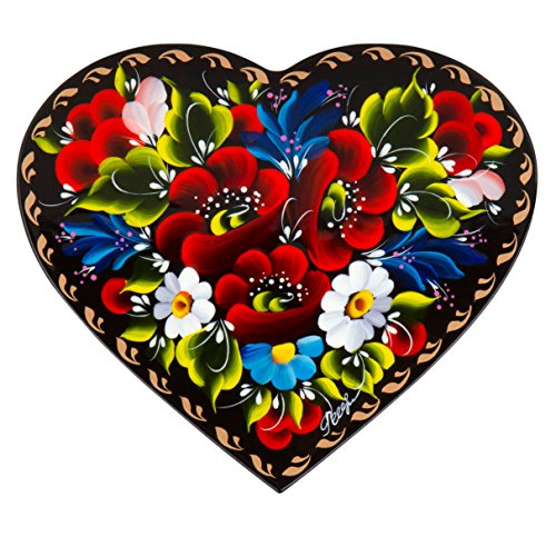 -. Feature : Item dimensions: 4.7" x 4.7" x 1.5". This item will be a bright and elegant gift for your Loved Ones! / Each Lacquer Box is crafted and professionally hand painted in Ukraine in an ancient, traditional manner named Petrykivka. / Carefully made of wood, hand decorated with high quality acryl paints and coated with deluxe lacquer finish. Made in the heart of Europe - Central Ukraine. / Comes in a glossy white cardboard box, ready for your gift message. Our lacquer boxes make wonderful gifts! (for Spanish-speaking buyers: regalo para mujeres caja de laca en forma de corazon) / This item is truly unique and our stock is really limited! We can not get many of these items from the manufacturer, only a few of each pattern! Just press the "Add to Cart" yellow button at the right top of this page to get your Exceptional Jewelry Box rushed straight to your door!
