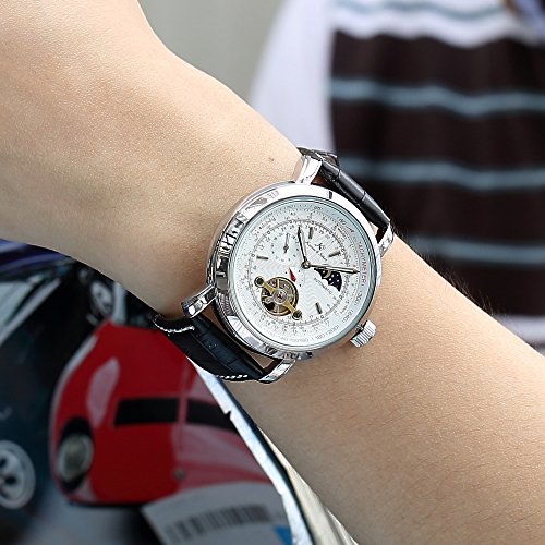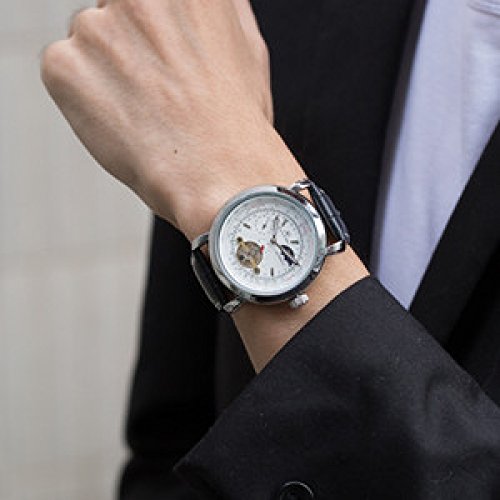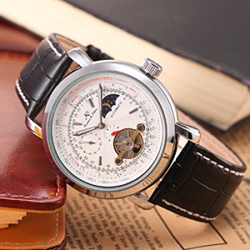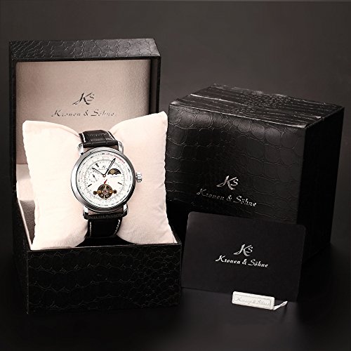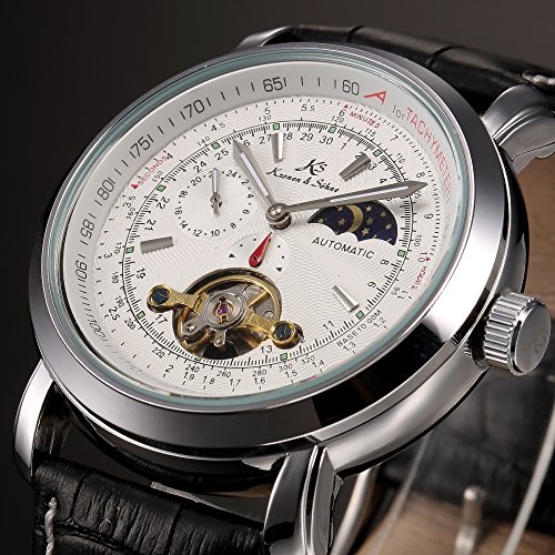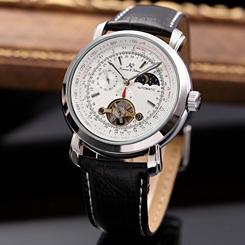 KS 럭셔리 to 루비욘 데이 나이트 표시 기능 첨부 와 자동 감기 가죽 밴드 맨즈 손목시계KS069