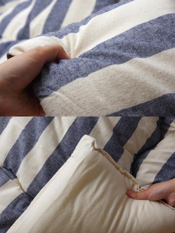 生地にインド綿を使用したこたつ布団です。インド産の綿は繊維が太く、引っ掛かりや摩擦に強く耐久性に優れています。ざっくりとした生地は肌触り、通気性が良く、ベタつかないサラッとした手触りが特徴です。 |