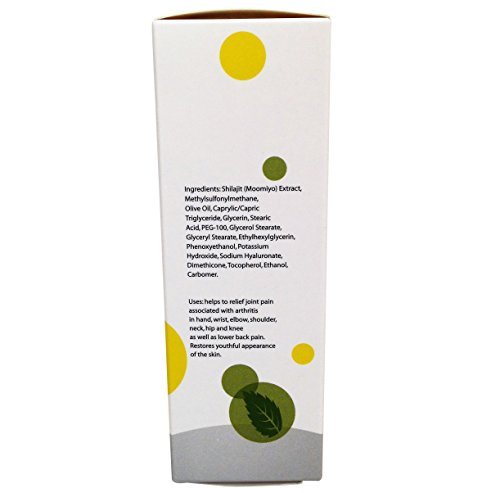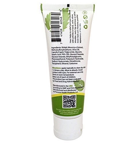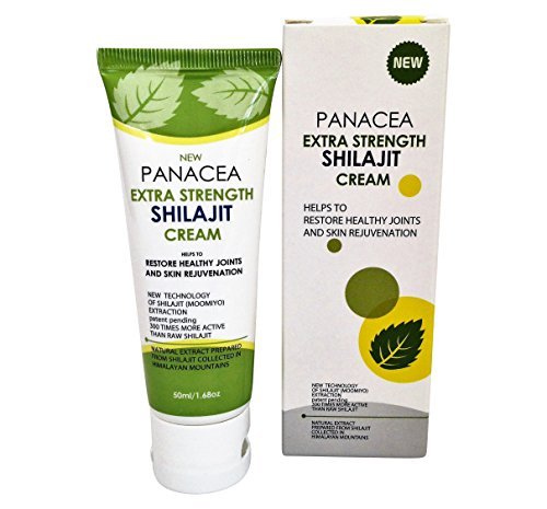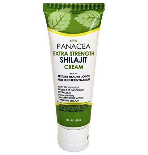 Panacea shilajit cream is innovative advanced formulation targeting people with age-related problems in joints and skin. The cream is a preferred choice for those who have problems with aging-associated joint pain in hands, elbow, neck, knee, shoulder, as well as back pain. Panacea cream supports skin regeneration and rejuvenation, helps to remove wrinkles and increase skin moisturizing. The cream helps to soothe and moisturize dry cracked skin within minutes. It produces a stunning result for the face skin: dab a dot under each eye, gently rub it into the skin, wait five minutes and watch the bags start to tighten and lighten. How does Panacea shilajit cream work? The main active substance in the cream is a mineral wax shilajit (moomoyo) known for thousand years for its disease-curing activities. Based on the innovative technology of shilajit extraction the cream has dramatically higher healing power comparing to other shilajit products on the market. The shilajit extract induces a synthesis of collagen and elastin proteins, stimulates new blood vessel formation, cell migration and has a strong anti-inflammatory activity. In the result, the shilajit cream significantly increases tissue regeneration and wound healing (patent pending). Why to chose Panacea shilajit cream? The cream works fast against aging-associated joint pain. You will feel pain release in a few minutes. o The pain relief effect is last for a long time (usually 6-8 hours). If you want to restore a youthful appearance of your skin, prevent its further aging and reduce wrinkle number and depth you have to try this cream. The product is non-greasy, non-staining and odor free. The cream is manufactured in the USA according to GMP and FDA requirements It contains natural shilajit collected in Himalayan mountains and was never tested on animals. This product is guaranteed! If you do not like it or not satisfied with the cream - simply return it and receive your 100% money back!Feature