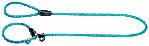 Die beliebte Retrieverleine / Moxonleine Freestyle von Hunter.TauMetallteile vernickeltfarblich passend gesteppte LederkappenDressurhalsung und Führleine aus einem StückHalsung durch Stoppring und Schieber stufenlos verstellbarDie 2,60m lange Variante ist eine Kombination von Retrieverleine und Führleine. Die Führleine ist mit einem Spezialschieber stufenlos verstellbarFeature