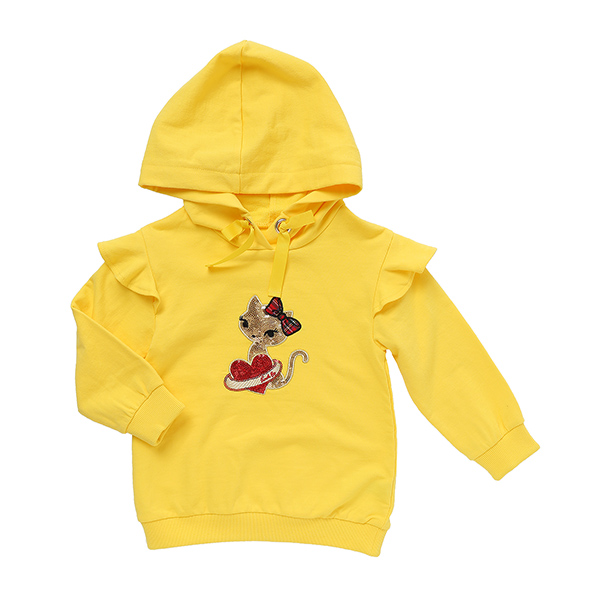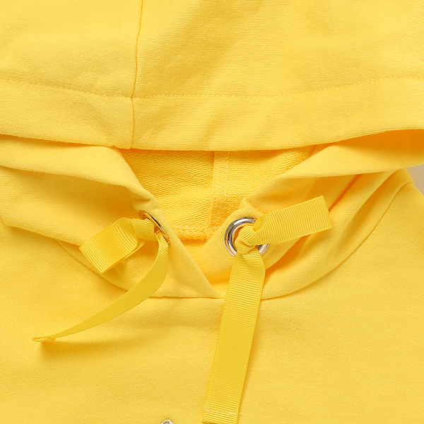 상품설명 옐로우컬러의 롱티셔츠 입니다. 후드가 달려 있으며, 어깨에 플레어 프릴이 러블리한 느낌을 더합니다. 쫄바지또는 스커트,데님팬츠등과 코디하시면 좋습니다. 편안하게 입히기 좋은 아이템입니다.