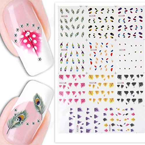 -. Title : Sealike False Peacock Feather Nail Art Tips Nail Decal Stickers Nail Tattoo for Women Girls with Stylus