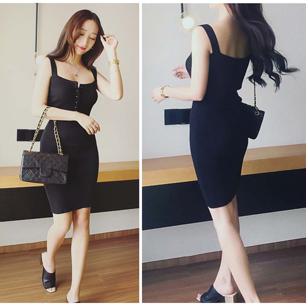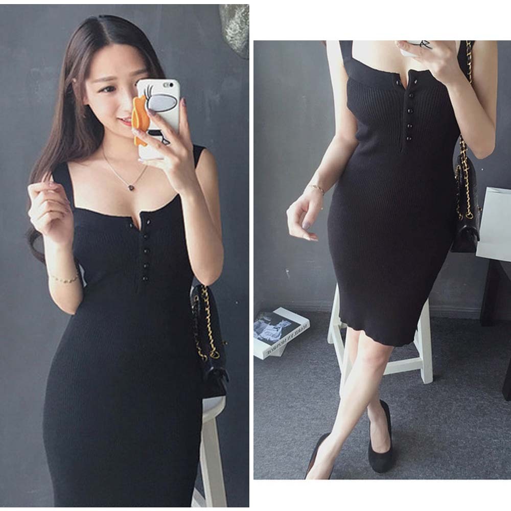 すっきりとスリムなシルエットのシングルブレストニット素材のタイトワンピース