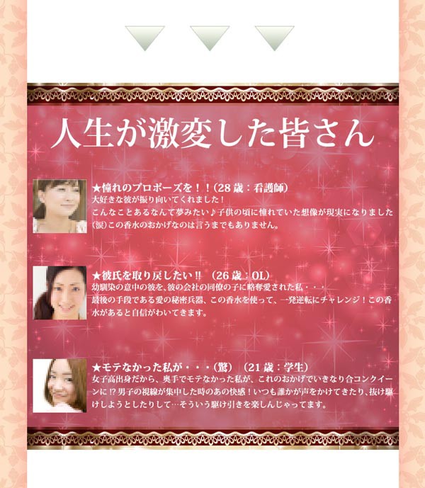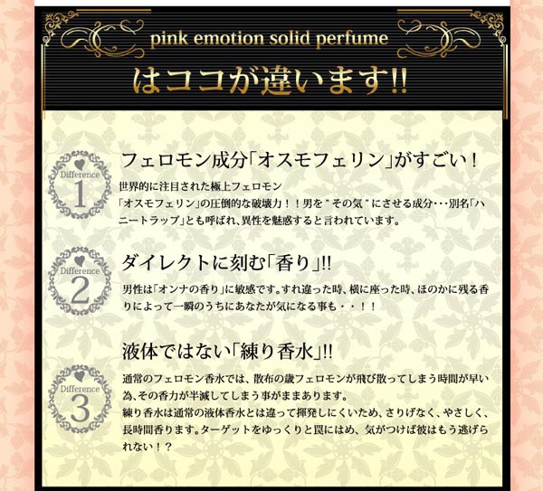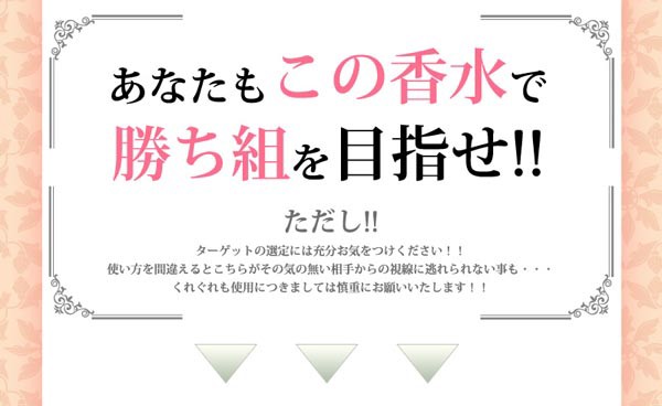 傷やはれもの、湿疹等、異常のある部位にはご使用にならないで下さい。乳幼児の手の届かない所に保管して下さい。香水以外の用途に使用しないでください。衣服などに直接つけないで下さい。火気にご注意下さい。 |