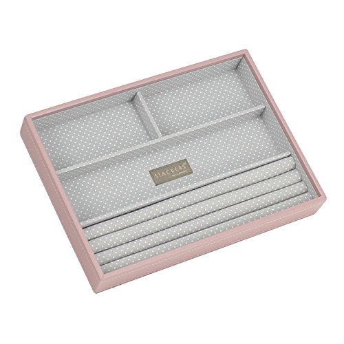 - Blossom Pink exterior with Gray Polka lining.. Ring & Bracelet Stackers.