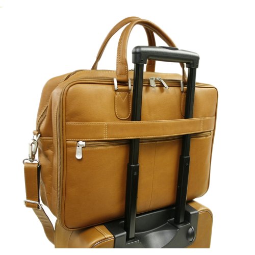 Studio : Piel Leather Publisher : Piel Leather Binding : Apparel Product Description Top zip opening to spacious main compartment with large zip-pocket and full organizer. Back compartment zips down completely to expedite the airline screening process and features a padded laptop pocket (16 x 12 x 2) and open pocket for files. Large rear zip-pocket and back strap to attach to a telescopic handle. Two front zip-pockets, double handles, and an adjustable/detachable shoulder strap. 0