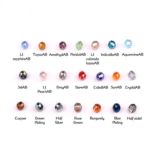 - Color of Crystal rondelle Beads: Copper,Green Plating,Half silver,Rose green,Burgundy,Blue Plating,Half violet,JetAB,Light roseAB,GrayAB,SiamAB,Dark sapphireAB,SunAB,CrystalAB,Light sapphireAB,TopazAB,Light AmethystAB,PeridotAB,Light colorado TopazAB,IndicoliteAB,AquamarineAB