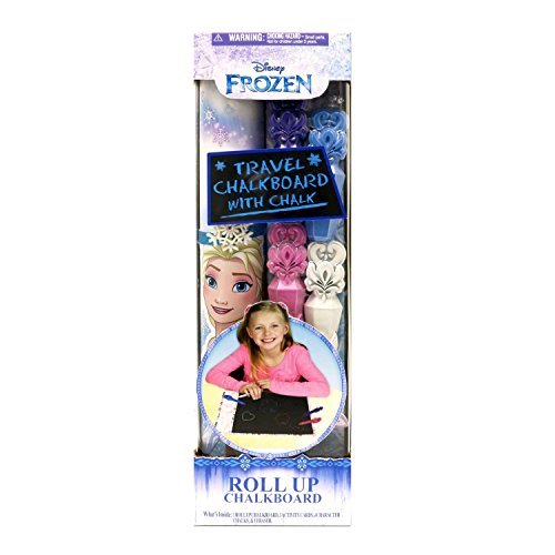 Disney Frozen Roll Up Chalkboard set includes 1 roll up chalkboard, 3 activity cards, 4 chalks, and 1 eraser. **Colors may vary**