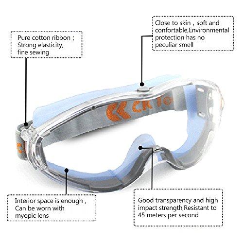 -. Feature : Scope of application:Laboratories, hospitals, cycling, industrial strike, sand, etc / Anti-fog coating provides fog control / Futuristic, low profile design for chemical splash and impact protection / Soft silicone provides a soft, comfortable seal / Cloth head strap provides a comfortable, easily adjustable fit, one size fits all.