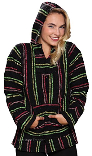 Binding : Apparel Product Description El Paso Design Mexican Baja hoodie pullover: Made popular with the hippie and surf cultures of Baja California in the 70s, these classic Baja Hoodies,"Jergas" have become one of the most popular Mexican style products of all time. All of our Baja Hoodie Jergas are manufactured from a blend of recyclable acrylic fibers. We guarantee you will love this hoodie, or your money back!