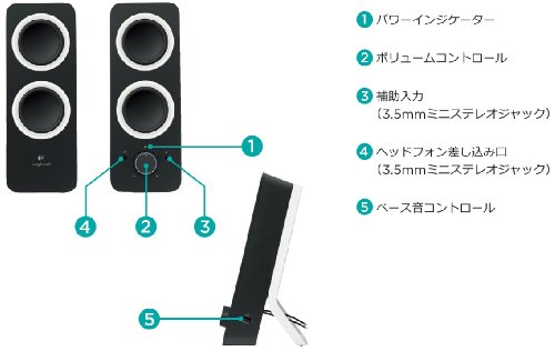 深いベース音と表現豊かなステレオサウンドのマルチメディアスピーカー、音量コントロールや入出力ジャックをフロントパネルに配置、お好みに合わせてベース音の調節が可能、ブラック