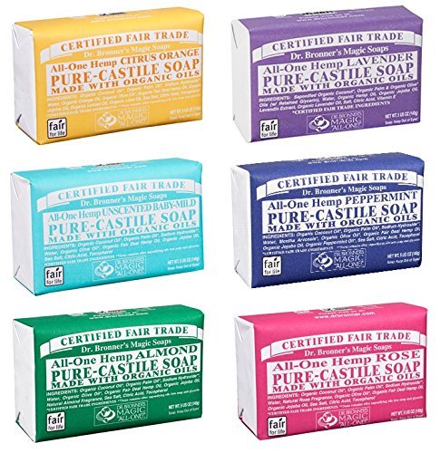 -. Title : Dr. Bronner's Magic Soaps Pure-castile Soap Variety Gift Pack Sampler; 6 Assorted 5 Ounce Bars