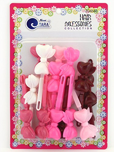 Product DescriptionTara Girls plastic hinge bow hair barrettes are designed to hold young girl's hair in place. The pack features an assortment of Maroon, Pink White colors to match many outfits.0