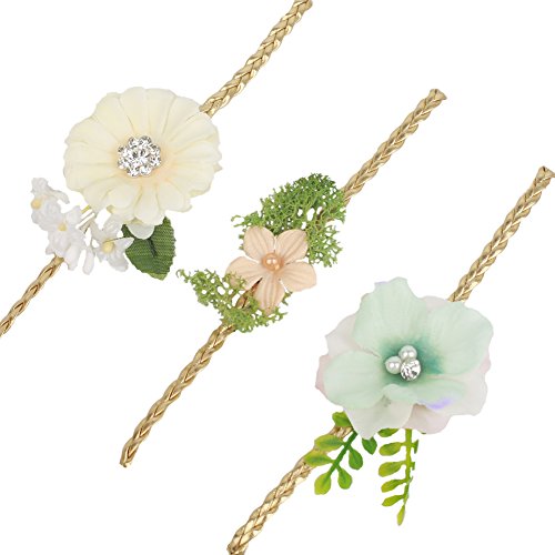 1- Classic fabric flower band - Handmade ivory fabric flower with white mini lily and Leaves, and decorated with pearl and acrylic crystals 2- Delicate hand sewn yellow mini flower with Super simulation of moss creating a chic effect 3- Elegant hydrangea flower, decorated with acrylic pearls