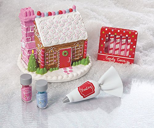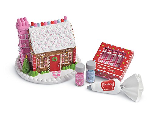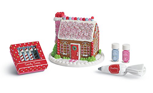 The WellieWishers spend a wonderful afternoon creating this splendid candy house; now that it's done, they think it might be too beautiful to eat! The set is loaded with delectable details; it includes: a pretend gingerbread house made of tasty treats, including gumdrop eaves and cookie shingles, two make-believe jars of sprinkles, one blue and one pink, and a piping bag of pretend frosting to decorate their masterpiece, a faux box of candy canes.Feature