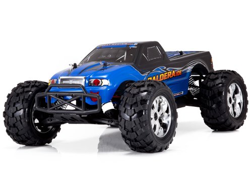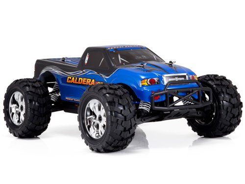 Get ready for car crushing, hill climbing, dirt flying action! The 4WD Caldera 10E monster truck is equipped with a powerful brushless motor, 3200mAh LIPO Battery, Brushless ESC, and is ready to unleash its fury. The included rechargeable LIPO battery and charger are easy to use and provide dependable fun. A durable plastic lightweight lower chassis, coupled with an aluminum upper chassis plate, provide a sturdy foundation for the Caldera 10E’s power and performance. The 305mm long wheelbase offers great stability, while four big bore oil filled shocks and adjustable independent suspension offer rock solid performance. A 2.4GHz radio system ensures control, for those ready to unleash the MAGMA-tude of the ready to run Caldera 10E electric monster truck! 0 |