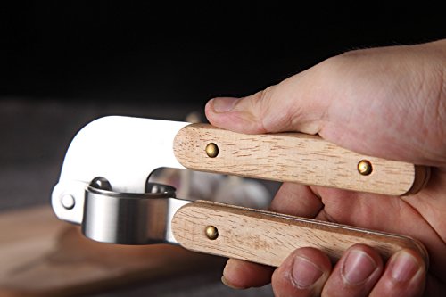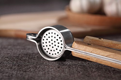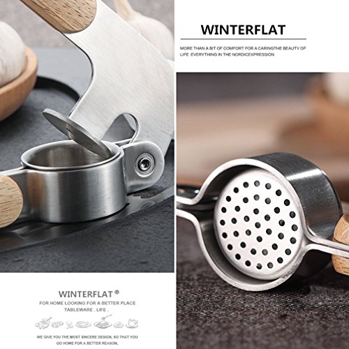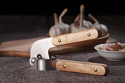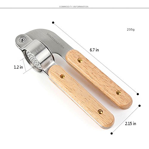 WINTERFLAT High-End Garlic Press Oak Handle 304 Stainless Steel Professional Heavy Soft-Handled Garlic Press Crush Garlic Cloves Ginger