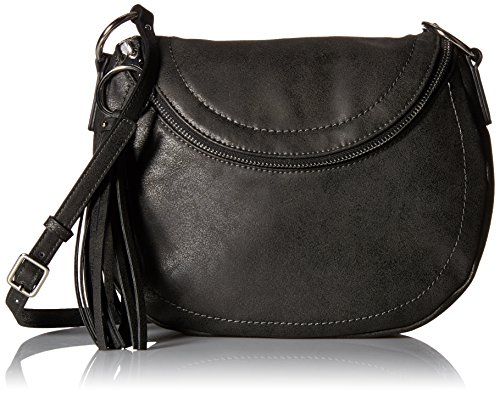 Large saddle bag featuring foldover flap and tassel zipper pull Adjustable cross-body strap Pockets: 1 interior zip, 1 exterior Brand : Nine West Item model num : Tassel Times Crossbody EAN : 0740349752306