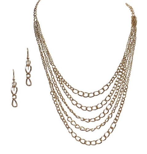 -. Title : Fashion Jewelry Multi Layered Gold tone Chain Statement Necklace Earring Set for Women