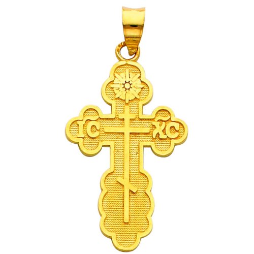 -. Title : 14k Yellow Gold Religious St. Olga Greek Orthodox Baptismal Cross Charm Pendant