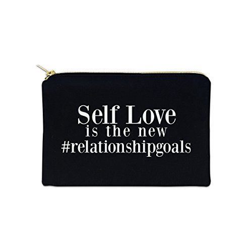 Self Love Is The New #RelationshipGoals 12 oz Cosmetic Makeup Cotton Canvas Bag - (Black Canvas)
