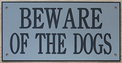 6in x 3in ACRYLIC BEWARE OF THE DOGS SIGN IN GREY WITH BLACK PRINT